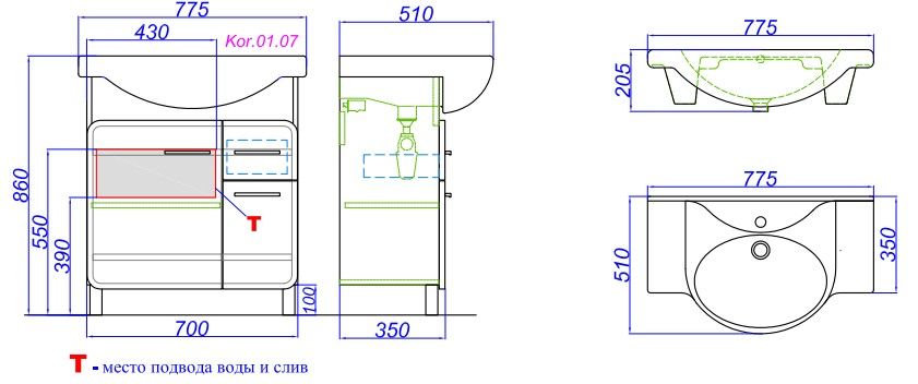 Тумба под раковину Aqwella Корсика 75 Kor.01.07 (нов KOR0107) купить