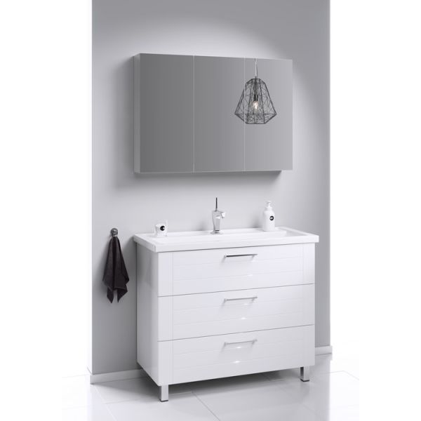 Тумба под раковину Aqwella Manchester MAN01103 100 смНапольная тумба в белом глянцевом цвете с тремя ящиками с умывальником