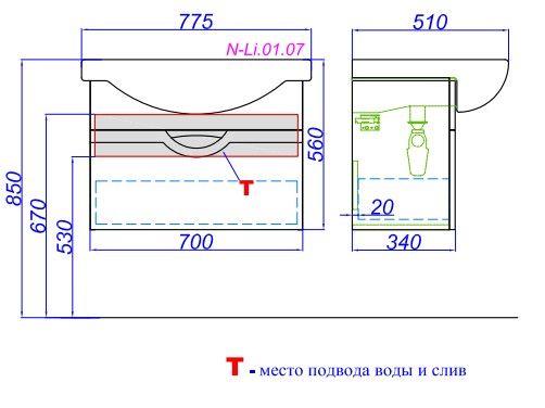 Тумба под раковину Aqwella Н-Лайн 75 N-Li.01.07