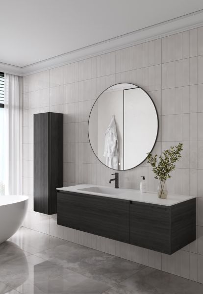Главной особенностью коллекции являются обрамления фасадов из алюминия в самых трендовых цветах: графит, матовое золото, матовый черный и серебро. Эти обрамления идеально дополняют сантехнику в ванной комнате.