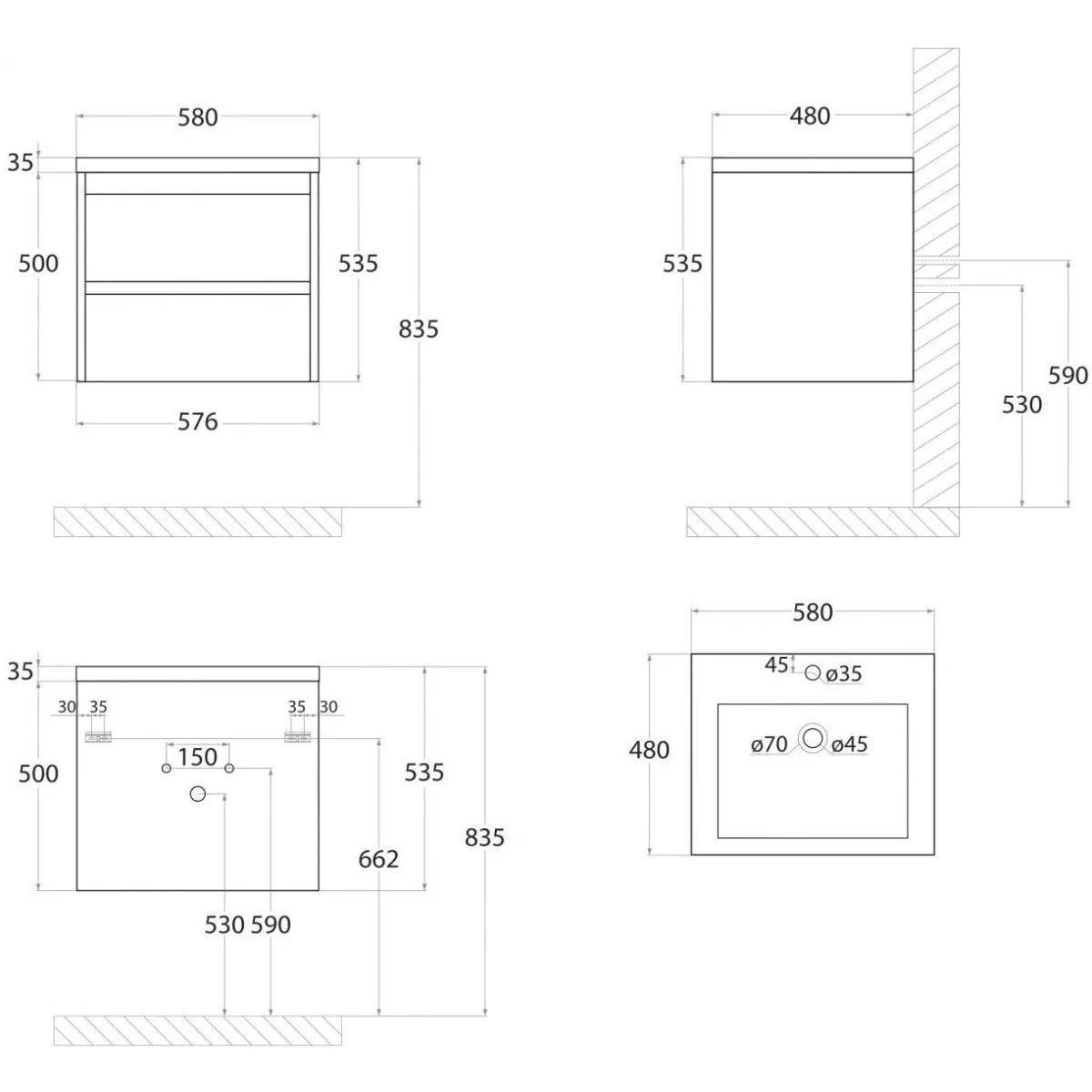FAMILY-M База под раковину подвесная с двумя выкатными ящиками, Iron Stone, 580x480x550, Family-M-580-2C-SO-IS