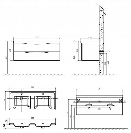 Тумба под раковину BelBagno подвесная 120x45см Rovere Moro ANCONA-N-1200-2C-SO-2-RW купить