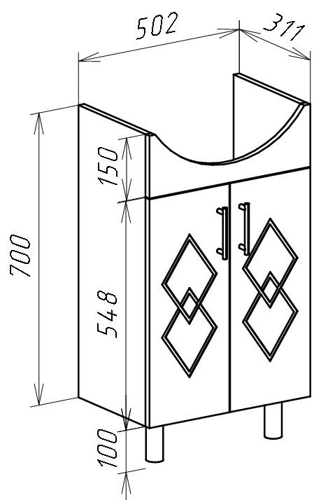 Тумба под раковину Bellezza Элеганс 55см бежевый 00000005190