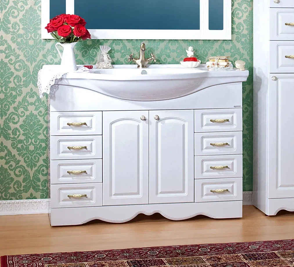 Удобная система хранения позволяет размещать все необходимое для гигиенических процедур, а её продуманные размеры отлично вписываются даже в небольшие помещения. Стильные ручки и элегантные фасады придают тумбе особый шарм, а разнообразие цветовых решений позволит выбрать модель, соответствующую любому интерьеру – от классического до модерн.