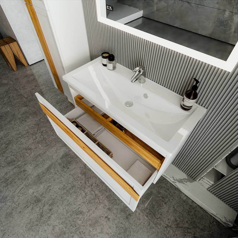 С помощью подвесной тумбы ванная комната становится не только более удобной, но и эстетически привлекательной, создавая атмосферу уюта и роскоши.