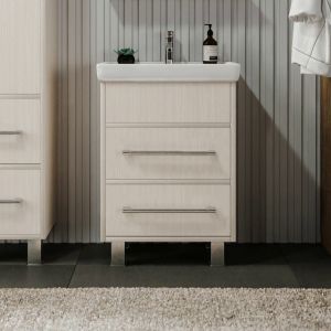 Удобная система хранения позволяет размещать все необходимое для гигиенических процедур, а её продуманные размеры отлично вписываются даже в небольшие помещения. Стильные ручки и элегантные фасады придают тумбе особый шарм, а разнообразие цветовых решений позволит выбрать модель, соответствующую любому интерьеру – от классического до модерн.