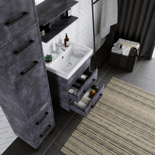 Удобная система хранения позволяет размещать все необходимое для гигиенических процедур, а её продуманные размеры отлично вписываются даже в небольшие помещения. Стильные ручки и элегантные фасады придают тумбе особый шарм, а разнообразие цветовых решений позволит выбрать модель, соответствующую любому интерьеру – от классического до модерн.
