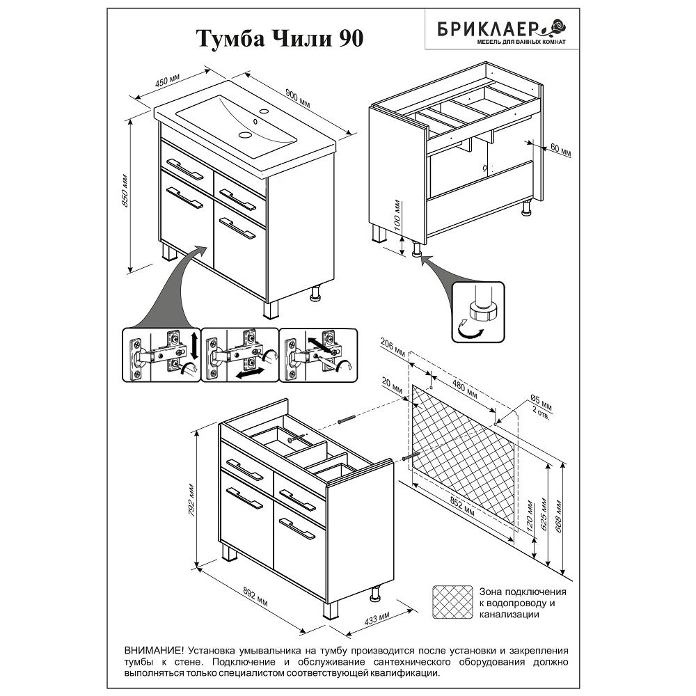 Тумба под раковину Бриклаер Чили 4627125415241 90 см цемент купить