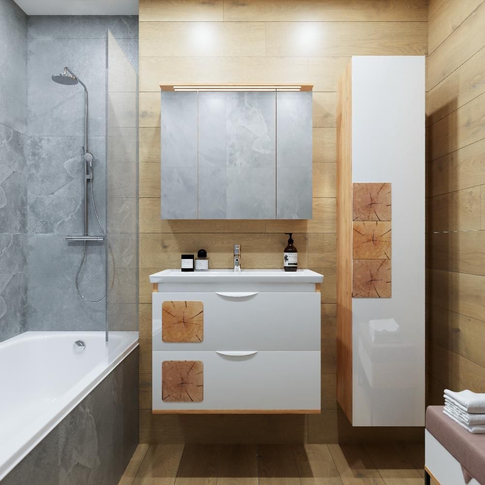 Тумба под раковину Бриклаер Форест 4627125416750 80 см дуб золотой/белый купить