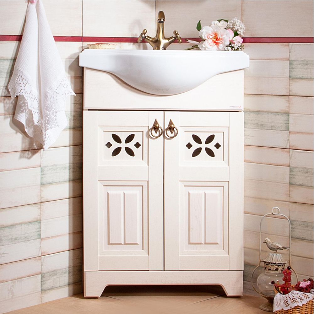 Тумба под раковину Бриклаер Кантри 4627125413704 угловая 60 см бежевый дуб прованс купить