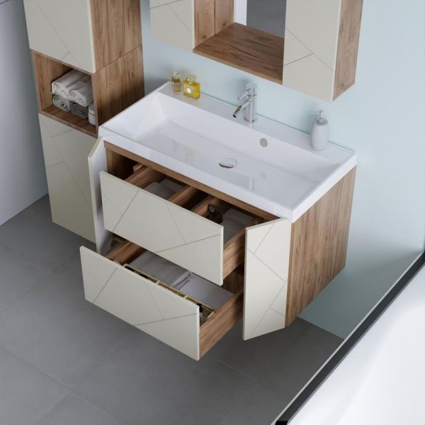 С помощью подвесной тумбы ванная комната становится не только более удобной, но и эстетически привлекательной, создавая атмосферу уюта и роскоши.