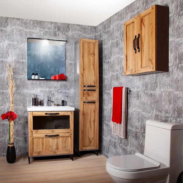 Удобная система хранения позволяет размещать все необходимое для гигиенических процедур, а её продуманные размеры отлично вписываются даже в небольшие помещения. Стильные ручки и элегантные фасады придают тумбе особый шарм, а разнообразие цветовых решений позволит выбрать модель, соответствующую любому интерьеру – от классического до модерн.