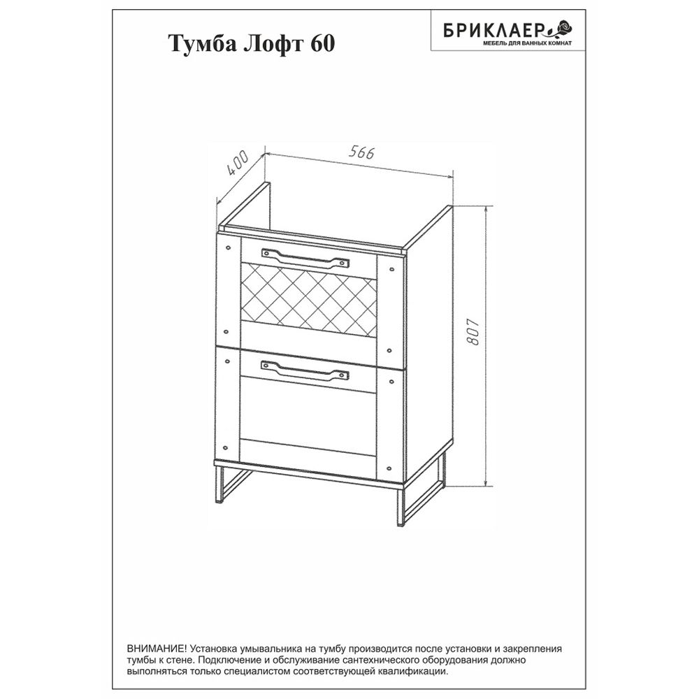 Тумба под раковину Бриклаер Лофт 4627125413391 60 см метрополитен грей купить