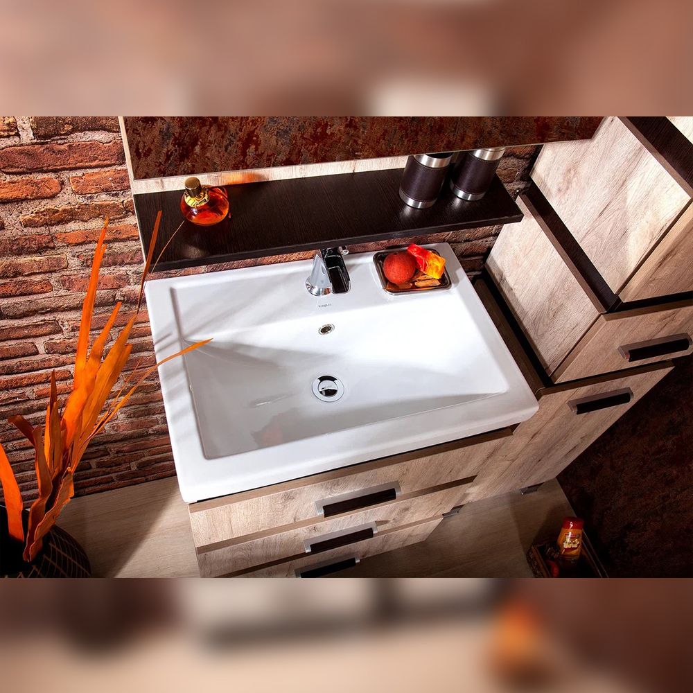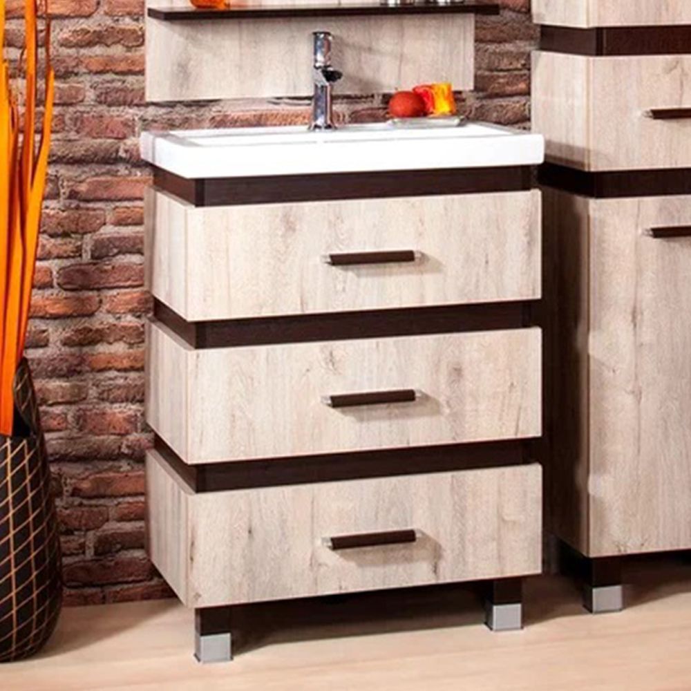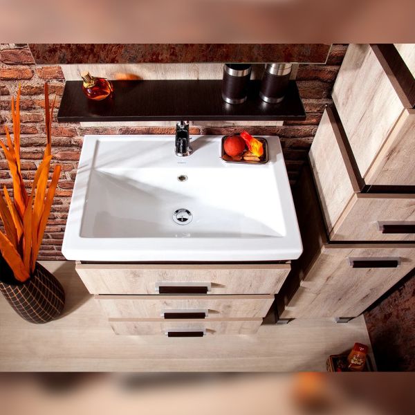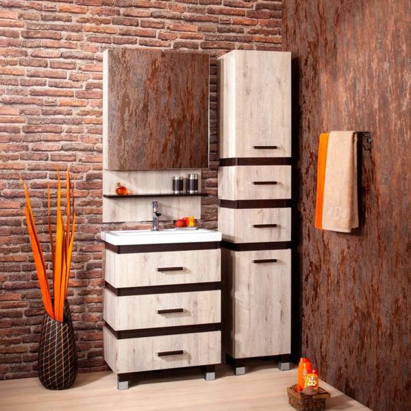 Удобная система хранения позволяет размещать все необходимое для гигиенических процедур, а её продуманные размеры отлично вписываются даже в небольшие помещения. Стильные ручки и элегантные фасады придают тумбе особый шарм, а разнообразие цветовых решений позволит выбрать модель, соответствующую любому интерьеру – от классического до модерн.
