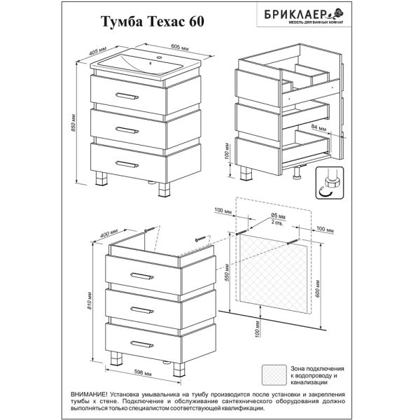 Тумба под раковину Бриклаер Техас 4627125412653 60 см кантри/венге