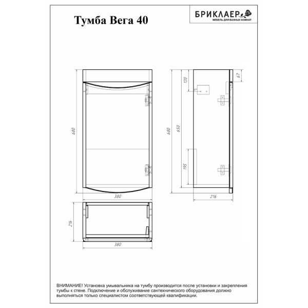 Тумба под раковину Бриклаер Вега 4627125414039 40 см белый