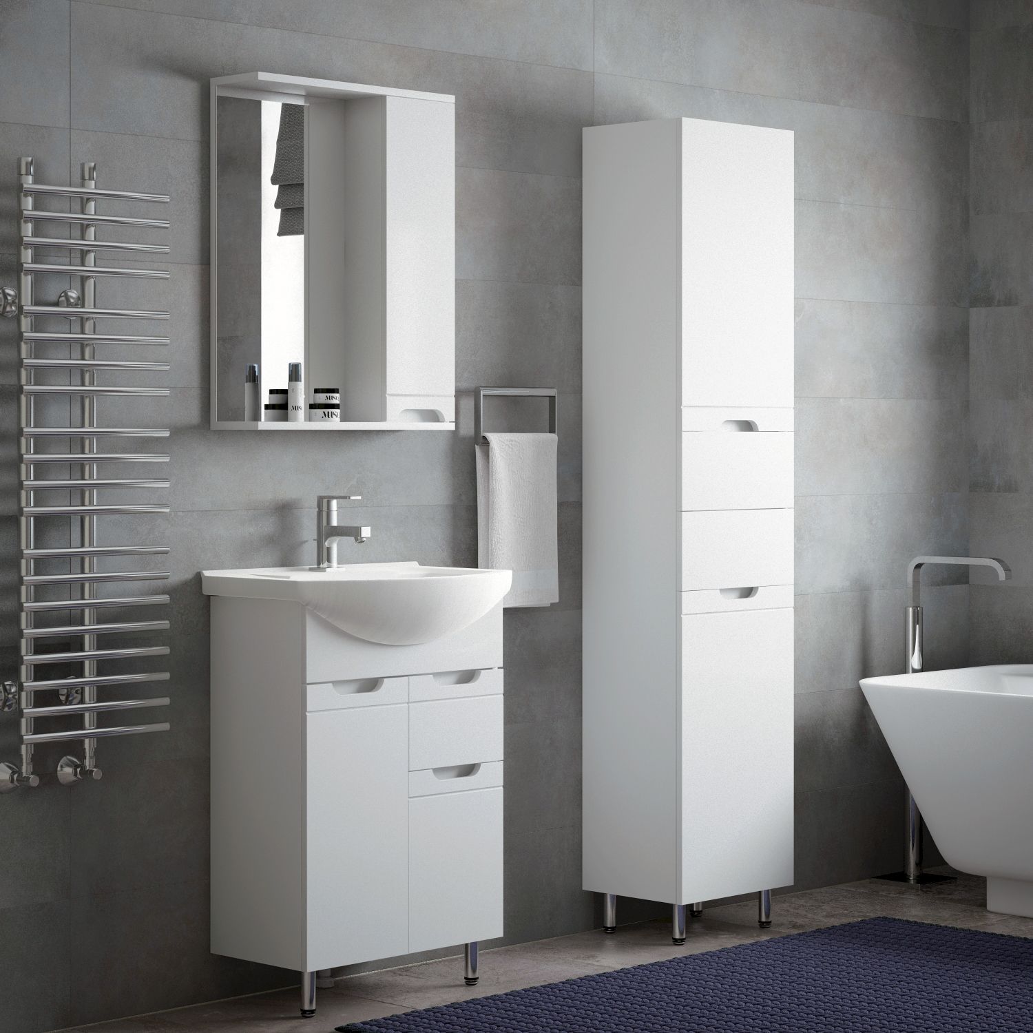 Тумба под раковину Corozo 60 Z1, 60 см, цвет белый, SD-00001491Коллекция мебели для ванных комнат "ЛЕЯ" создана для тех, кто ценит простоту форм, сочетание округлых и прямых линий, удобство эксплуатации. У мебели коллекции «ЛЕЯ» корпус выполнен из ЛДСП, фасады - из влагостойкой плиты МДФ, покрытие – пленка ПВХ. В верхней части стойки расположены полки, в нижней части - высокие боковины. Фурнитура с лицевой стороны фасадов отсутствует, вместо нее предусмотрены интегрированные ручки с декоративной полосой тонкой фрезеровки. Высота ящика по 110 мм. Тумба подходит под раковину Corozo Элеганс 60 см. Раковина приобретается отдельно.
