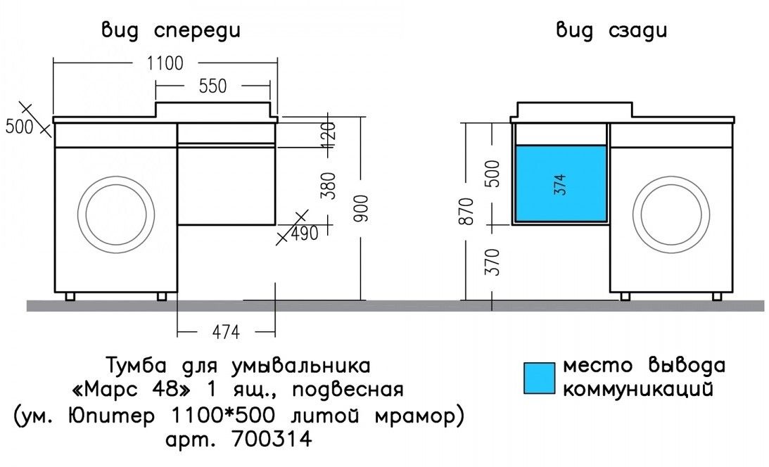 Тумба под раковину для стиральной машины СанТа Марс 700314 подвесная 48см белый