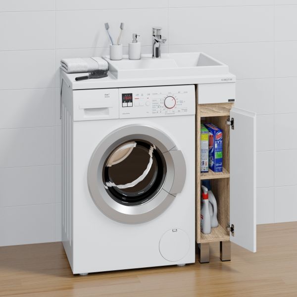 Тумбу можно устанавливать как с левой раковиной Юпитер 80х50, так и правой. Комплектация: ножка хром - 2 шт., ножка пластик 2 шт., петли с плавным закрыванием - 1 шт