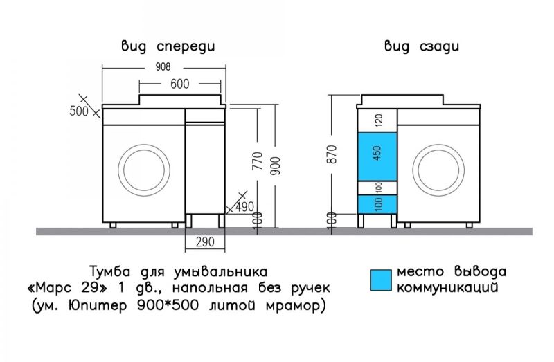 Тумбу можно устанавливать как под левую раковину Санта Юпитер 90/50 (арт 900128), так и под правую (арт 900129).