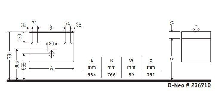 Тумба под раковину Duravit D-Neo DE435601818 подвесная белая Duravit D-Neo DE435601818 Подвесная тумба для раковины 1005*480 мм (белый матовый). С 2 выдвижными ящиками, верхний ящик с вырезом для сифона. Раковина в комплект не входит, рекомендована раковина 2367100000.