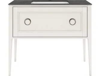 Напольная тумба с одним выдвижным ящиком выполнена из массива ясеня с отделкой «открытая пора». Вместительный ящик с плавным закрыванием украшен двумя крупными ручками. Сочетается с керамическими столешницами PLAZA Classic шириной 100 см. Подходит для установки раковин с типом монтажа «встраиваемая снизу».