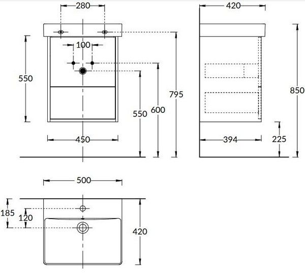Корпус подвесной тумбы и фасады двух выдвижных ящиков с удобным открыванием push-to-open выполнены в белом матовой цвете. Тумба предназначена для установки раковины PRO шириной 50 см.