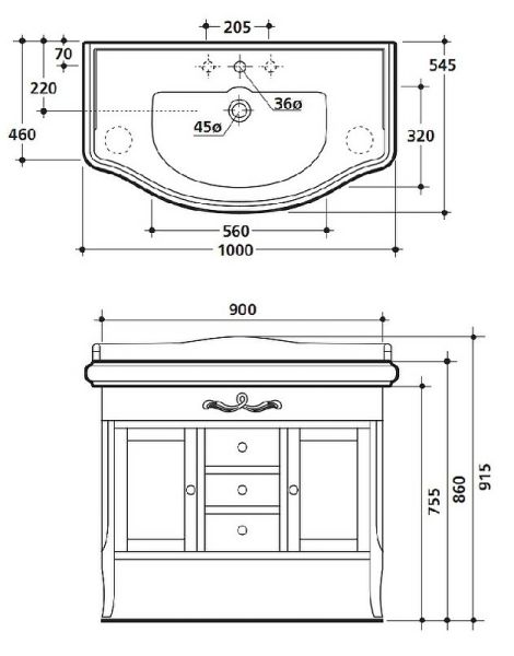 Габариты корпуса тумбы (ШхВхГ): 90 х 75.5 х 46 см.