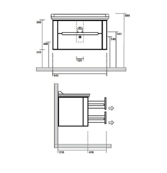 Габариты корпуса тумбы (ВхШхГ): 500х940х510 мм.