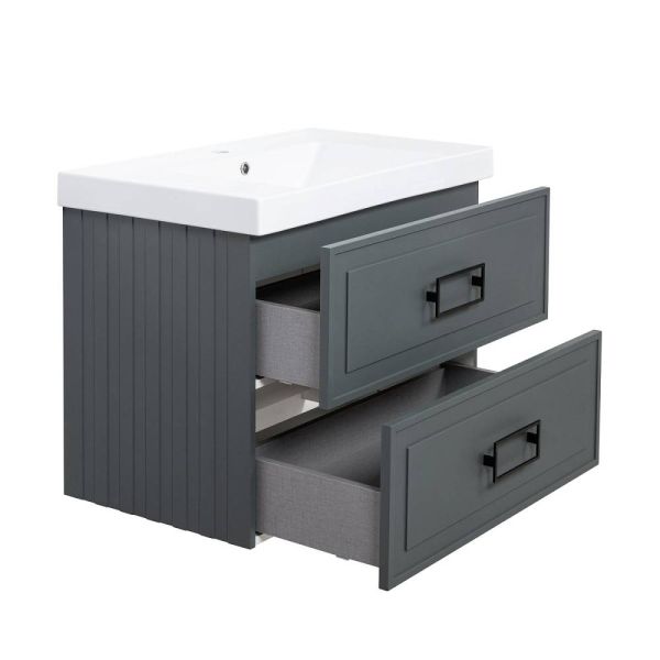 Тумба под раковину La Fenice Cubo FNC-01-CUB-G-80-2 77.6 смПодвесная тумба La Fenice Cubo TWIN FNC-01-CUB-G-80-2 обладает рядом неоспоримых преимуществ. Тумбу можно оснастить встраиваемой раковиной (арт. CU.NN.80), либо же приобрести столешницу в подходящем цветовом решении (арт. FNC-03-PL01-80, FNC-03-VS03-80) и установить на неё раковину-чашу. К данной тумбе необходимо выбрать белые или черные ручки, которые включены в стоимость тумбы (FNC-04-CUB-B-80 - белые; FNC-04-CUB-N-80 - черные). За счет входящего в комплект сифона Prevex, тумба обладает полноценными ящиками для хранения (без выреза). Ящики выполнены в фантазийной цветовой гамме "Лён антрацит". Тумба оснащена скрытыми доводчиками плавного закрывания частичного выдвижения Samet (Турция) и подвесным регулируемым механизмом Camar (Италия). Фасад и корпус тумбы покрыты краской и матовым лаком, что является надёжной защитой от влаги. Прекрасным и функциональным дополнением к тумбе станет пенал La Fenice Cubo серо-зеленого цвета FNC-05-CUB-G-30