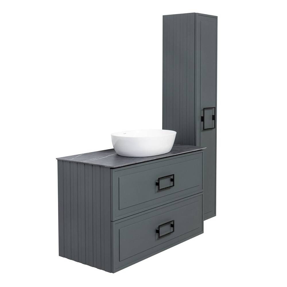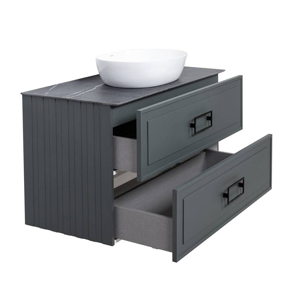 Тумба под раковину La Fenice Cubo TWIN FNC-01-CUB-G-90-2 87.6 смПодвесная тумба La Fenice Cubo TWIN FNC-01-CUB-G-90-2 обладает рядом неоспоримых преимуществ. Тумбу можно оснастить правосторонней или левосторонней встраиваемой раковиной (арт. CU.NN.90R или CU.NN.90L), либо же приобрести столешницу в подходящем цветовом решении (арт. FNC-03-PL01-90, FNC-03-VS03-90) и установить на неё раковину-чашу. К данной тумбе необходимо выбрать белые или черные ручки, которые включены в стоимость тумбы (FNC-04-CUB-B-80 - белые; FNC-04-CUB-N-80 - черные). За счет входящего в комплект сифона Prevex, тумба обладает полноценными ящиками для хранения (без выреза). Ящики выполнены в фантазийной цветовой гамме "Лён антрацит". Тумба оснащена скрытыми доводчиками плавного закрывания частичного выдвижения Samet (Турция) и подвесным регулируемым механизмом Camar (Италия). Фасад и корпус тумбы покрыты краской и матовым лаком, что является надёжной защитой от влаги. Прекрасным и функциональным дополнением к тумбе станет пенал La Fenice Cubo серо-зеленого цвета FNC-05-CUB-G-30
