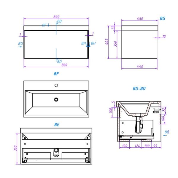 Тумба под раковину La Fenice Simpla FNC-01-SIM-BG-80Синяя матовая 80 см