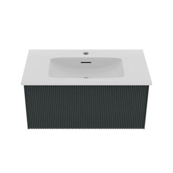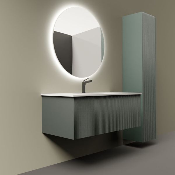 Тумба под раковину La Fenice Terra FNC-01-TER-G-80 74 смНовая коллекция Terra - это история долгого и кропотливого поиска уникального, ни на кого не похожего дизайна, в сочетании с современным качеством. Ультратонкая и идеально ровная раковина, механизм открывания push-to-open, плавное закрывание дверей и ящиков.Подвесная тумба La Fenice Terra FNC-01-TER-G-80 обладает уникальным, ни на что не похожим дизайном. Запатентованная система Samet Push-Open Soft Close позволяет совмещать бесшумное закрывание и открытие при помощи касания. Фасад и корпус тумбы покрыты краской и матовым лаком, что является надёжной защитой от влаги. Ультратонкая и идеально ровная раковина вкупе с современным качеством тумбы позволят почувствовать незабываемый комфорт в ванной комнате. Прекрасным и функциональным дополнением к тумбе станет пенал La Fenice Terra серо-зеленого цвета FNC-05-TER-G-30