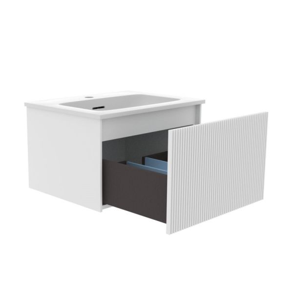 Тумба под раковину La Fenice Terra FNC-01-TER-B-60 60 смНовая коллекция Terra - это история долгого и кропотливого поиска уникального, ни на кого не похожего дизайна, в сочетании с современным качеством. Ультратонкая и идеально ровная раковина, механизм открывания push-to-open, плавное закрывание дверей и ящиков.