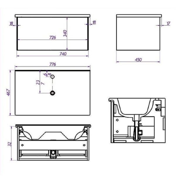 Габариты корпуса тумбы (ШхВхГ): 740х320х450 мм.