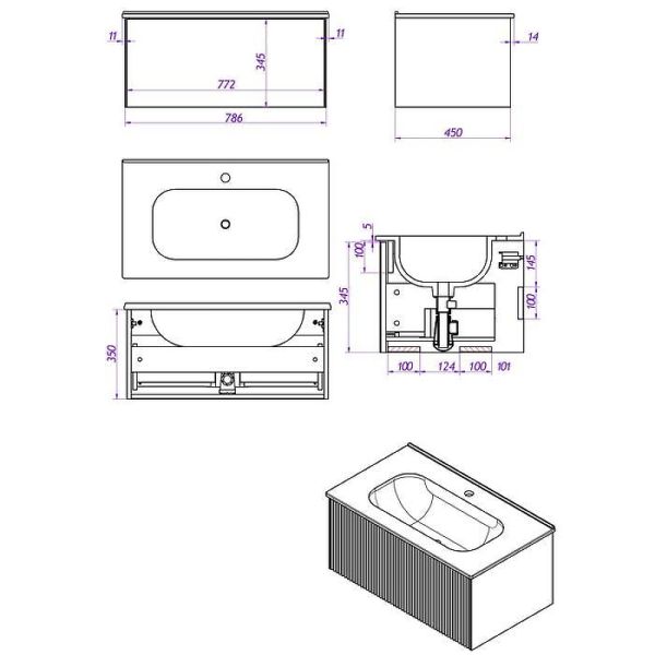 Габариты корпуса тумбы (ШхВхГ): 740х320х450 мм.