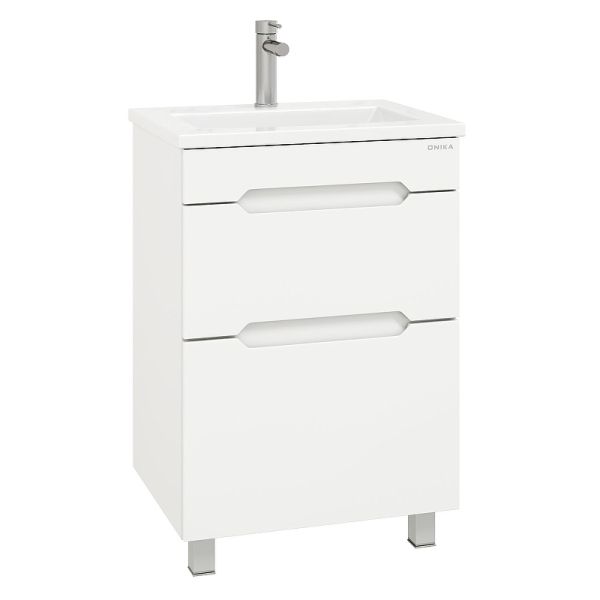 Напольная тумба для ванной комнаты Onika Айленд 60 сочетает в себе стильный минималистичный дизайн, белую глянцевую поверхность и высочайшее качество исполнения.