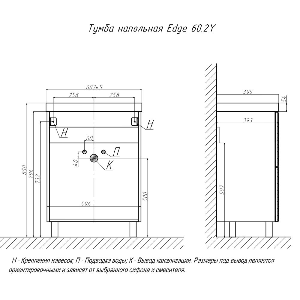 Тумба под раковину напольная Velvex Edge tn.EDG.9696.60.2Y белый глянец, 60 см