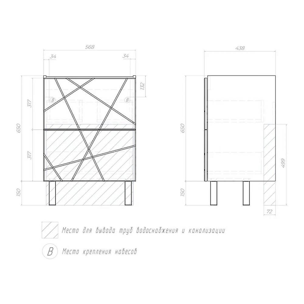 Тумба под раковину напольная VIGO Geometry 015, 60 см. Гарантийный срок 2 года. Монтаж: напольны... Подробнее
