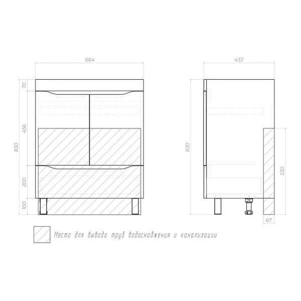 Тумба под раковину напольная VIGO Grani 285, 70 см. Гарантийный срок 2 года. Монтаж: напольный. ... Подробнее