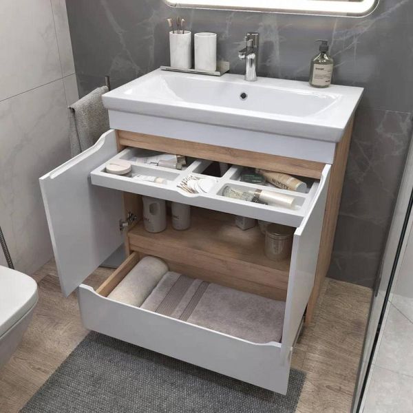 Тумба под раковину напольная VIGO Grani 286 дуб золотой, 80 см. Гарантийный срок 2 года. Монтаж: напольный. Доводчик: да. Нажимной механизм: нет.