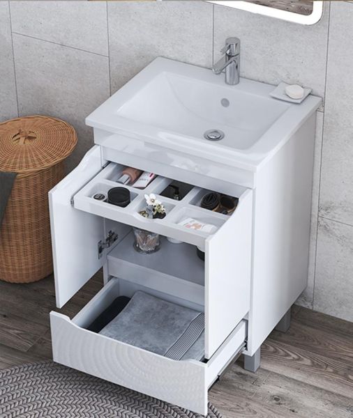 2 дверцы, 1 ящик; 1 полка ЛДСП; органайзер для мелочей,опоры квадратные регулируемые; вариант размещения: напольное