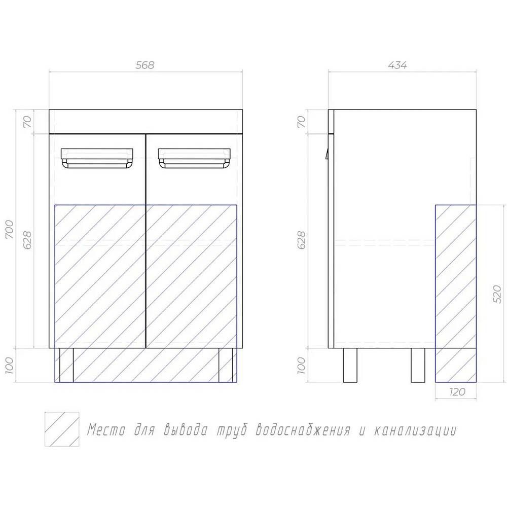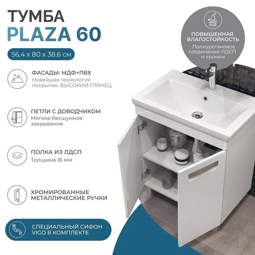 Тумба под раковину напольная VIGO Plaza 023, 60 см. Гарантийный срок 2 года. Монтаж: напольный. Доводчик: да. Нажимной механизм: нет.