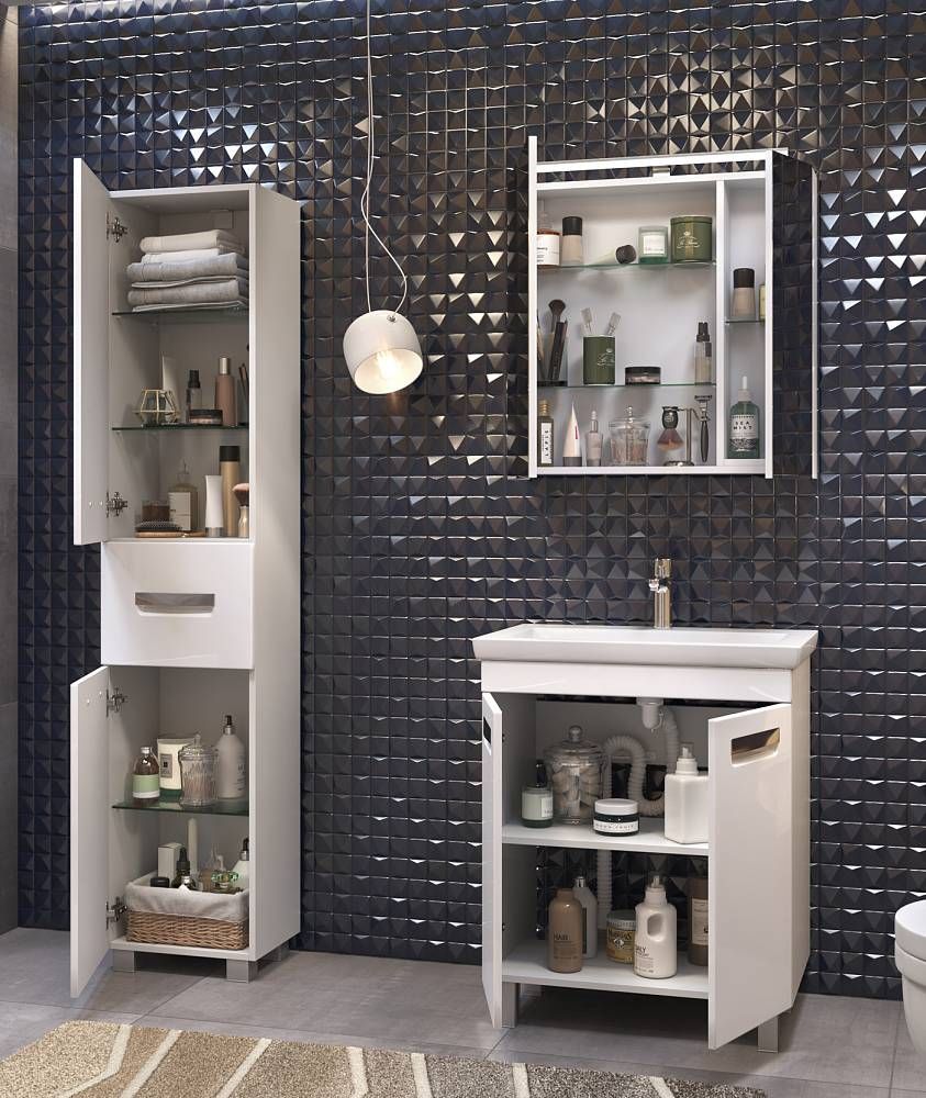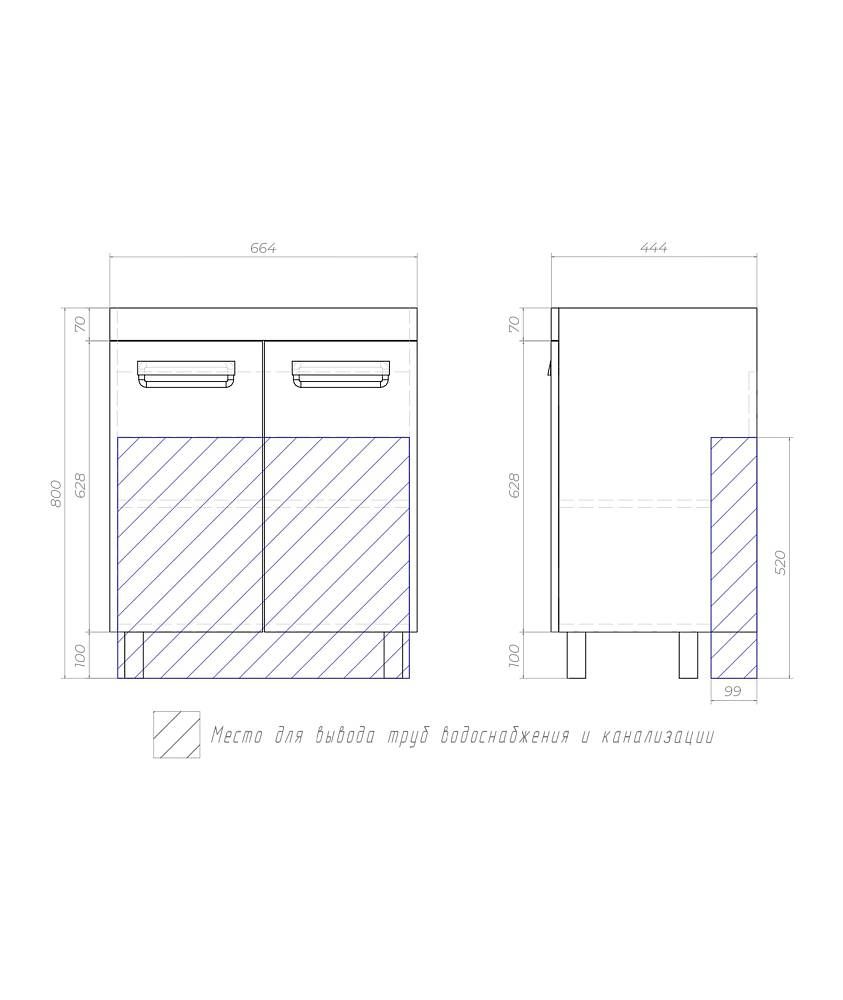 2 дверцы; 1 полка ЛДСП; ручка врезная металлическая хромированная, опоры квадратные регулируемые. Материал корпуса: влагостойкая ЛДСПМатериал фасадов: ЛМДФПокрытие: пленка ПВХДверцы: петли с механизмом плавного закрыванияЯщики:скрытые направляющие полного выдвижения, механизм мягкого бесшумного самозакрывания. (Hettich,Германия)