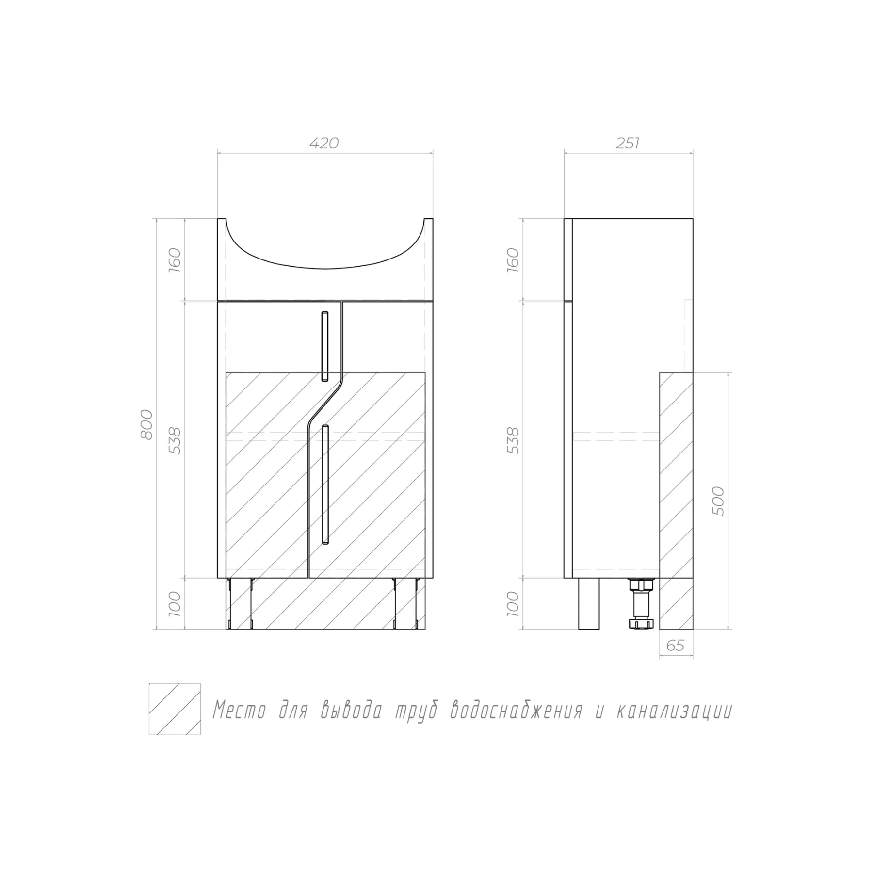 Тумба под раковину напольная Vigo Turin 223 45 см поставляется в разобранном виде белый