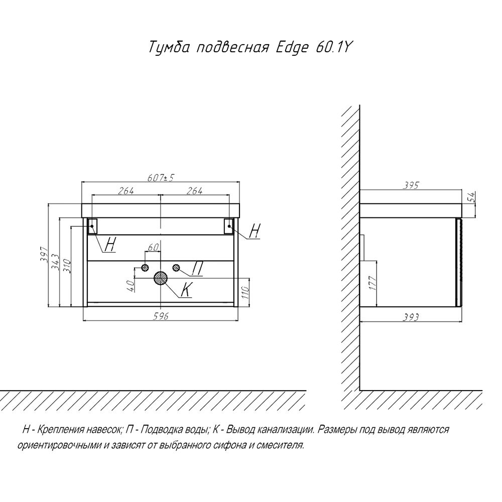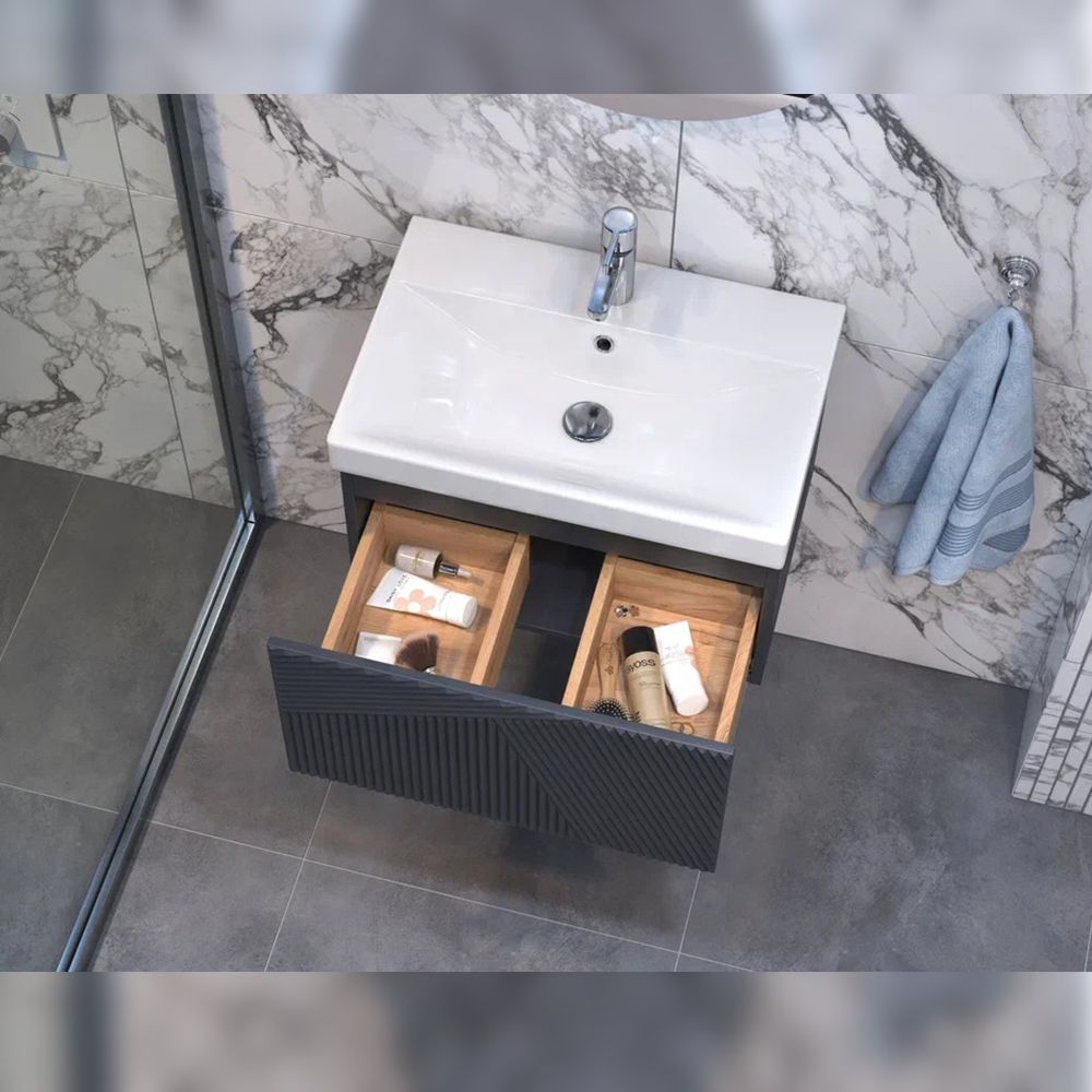 Тумба под раковину подвесная Velvex Edge tp.EDG.9696.60.1Y графит, 60 см: 1 выдвижной ящик с механизмом открывания push-to-open.