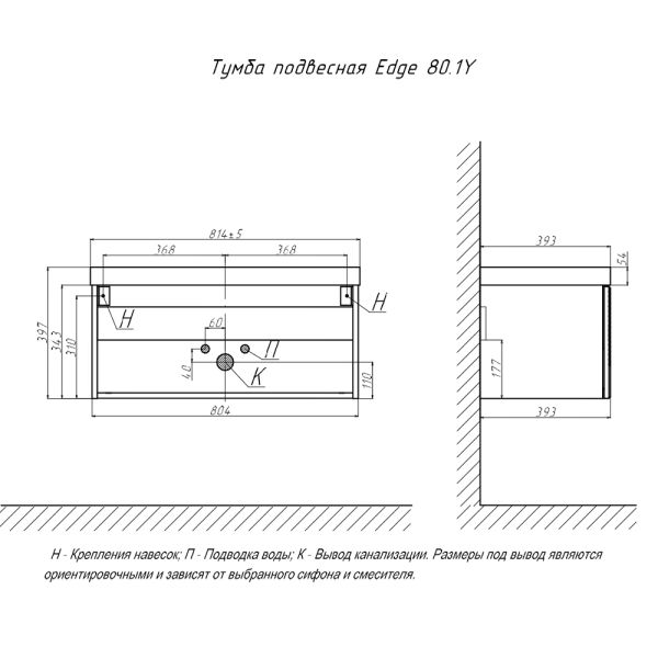 Тумба под раковину подвесная Velvex Edge tp.EDG.9696.80.1Y белый глянец, 80 см купить