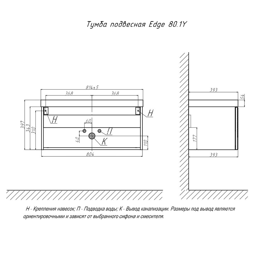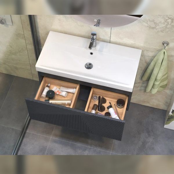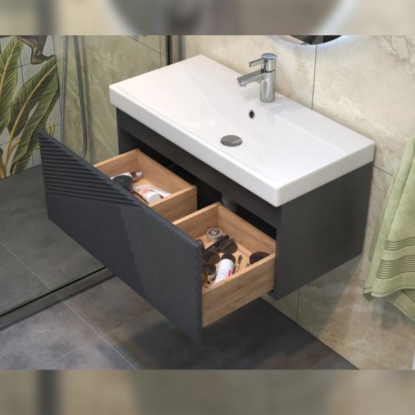 Тумба под раковину подвесная Velvex Edge tp.EDG.9696.80.1Y графит, 80 см: 1 выдвижной ящик с механизмом открывания push-to-open.