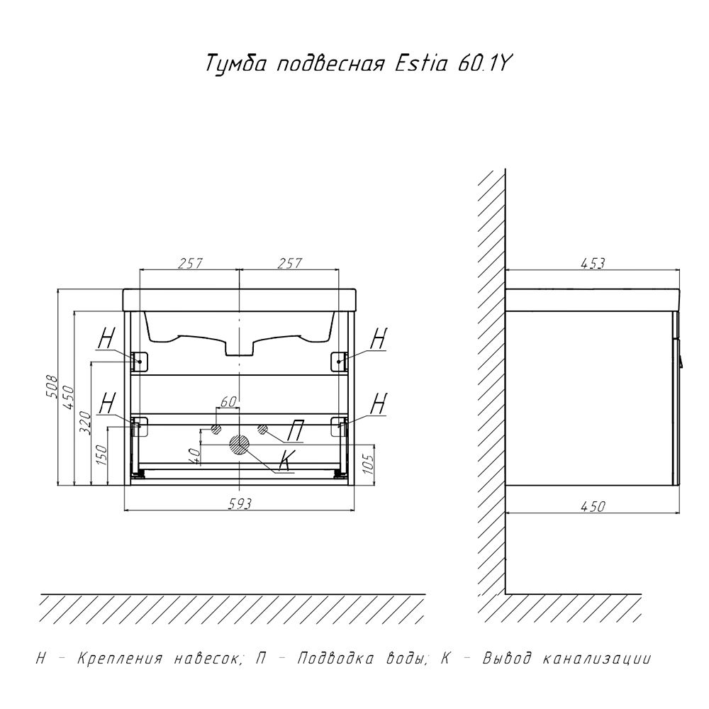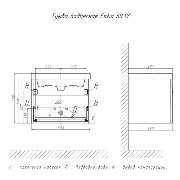 Тумба под раковину подвесная Velvex Estea tp.EST.MOD.60.1Y, 60 см