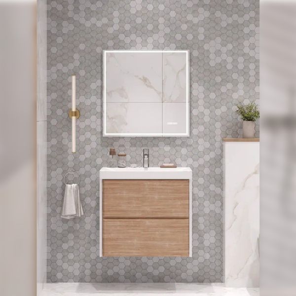 Тумба под раковину подвесная Velvex Gesso tp.GES.9696.70.2Y белый матовый/дуб сонома, 70 см: 2 выдвижных ящика с механизмом открывания push-to-open.